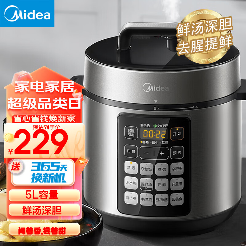 美的(Midea) 电锅 双胆家用智能高压鲜汤深胆大火速热快煮饭大屏多功能预约 MY-E522(4-10人) 5L价格:399.00元!