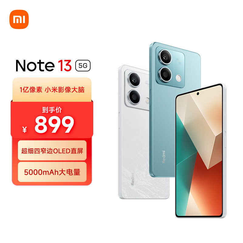 小米Redmi Note13 5G 1亿像素 超细四窄边OLED直屏 6GB+128GB 时光蓝 SU7 5G手机价格:899.00元!