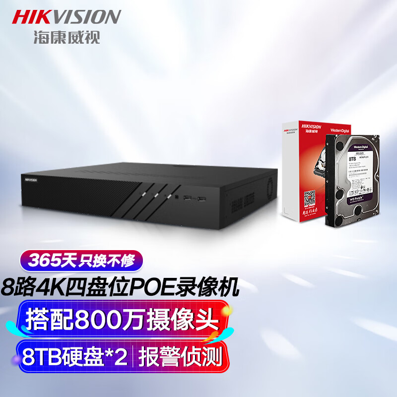 海康威视网络硬盘录像机监控8路POE网线供电NVR满配8个摄像头带8T硬盘DS-7908N-R4/8P价格:5215.00元!