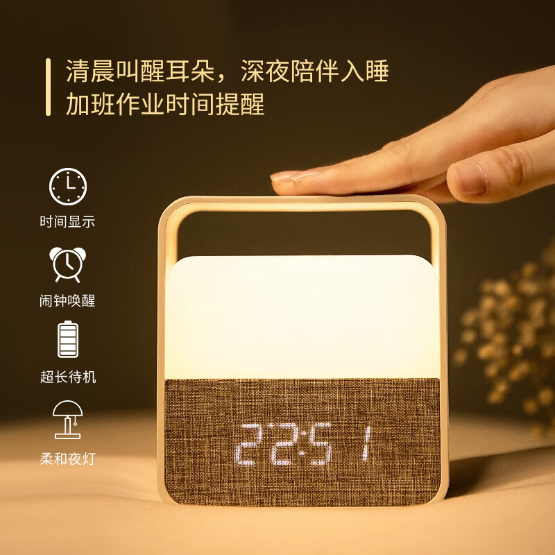 美的(Midea)台灯led灯宿舍卧室床头灯创意新年礼物智能充电时钟闹钟小夜灯价格:99.00元!