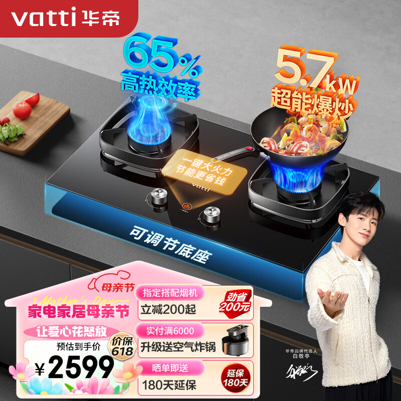 华帝(VATTI)【爆炒灶】燃气灶家用台式嵌入式5.7kW大火力高热效易打理龙卷火灶台灶具JZT-i10506H(天然气)价格:2599.00元!