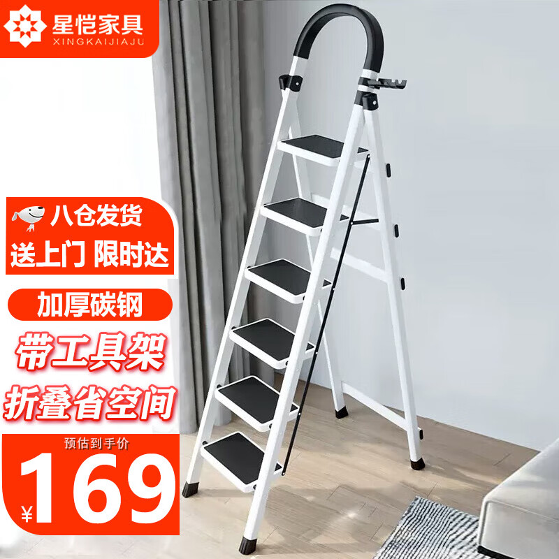 星恺(XINGKAI)梯子家用折叠梯人字梯多功能登高爬梯扶梯小梯子TZ53白色六步梯价格:169.00元!