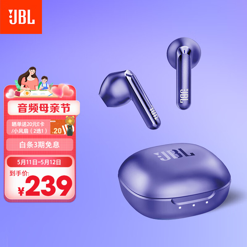 JBL T280TWS X2 真无线蓝牙耳机 半入耳音乐耳机 通话降噪运动防汗 苹果安卓小米带麦游戏耳机 风信紫价格:269.00元!