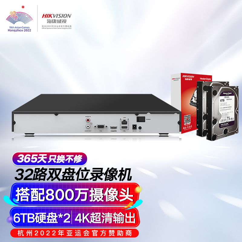 HIKVISION海康威视监控主机 32路双盘位 录像机监控硬盘录像机监控主机DS-7832N-R2 带2块6TB价格:3682.00元!