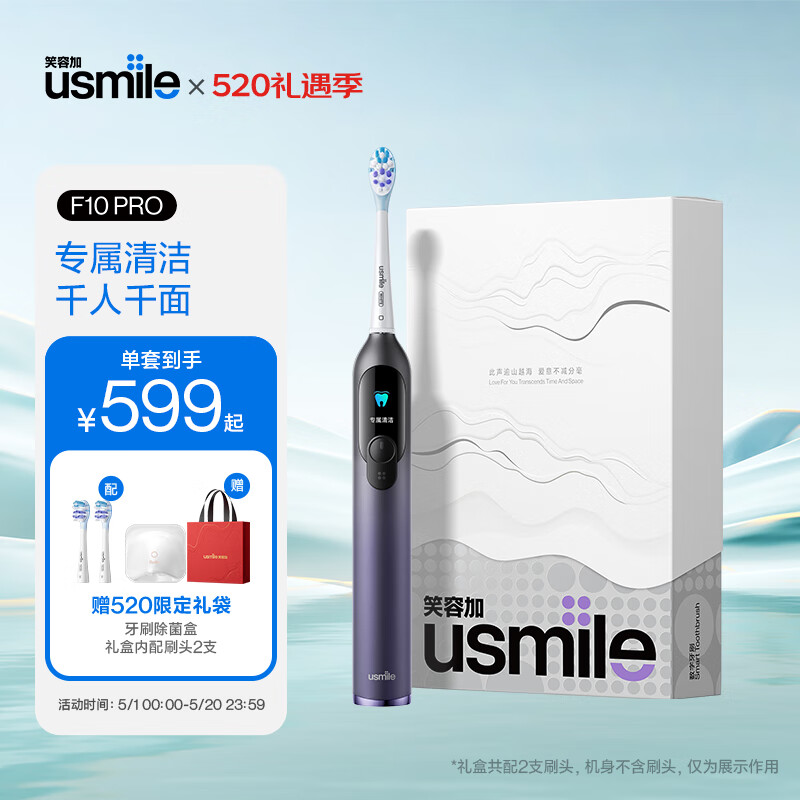 usmile笑容加电动牙刷 双面屏智能数字牙刷 成人情侣款礼物送男友/女友 F10 PRO幻魅紫 520情人节礼物价格:659.00元!
