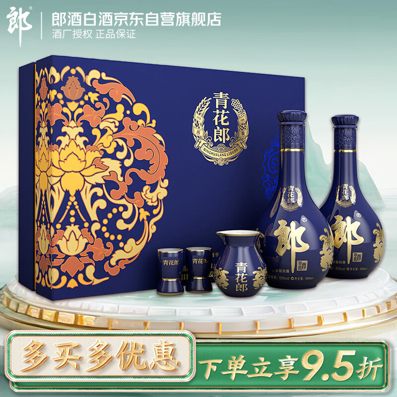 郎酒 青花郎 酱香型 白酒 53度 500ml*2瓶 礼盒装【婚宴用酒】价格:2240.00元!