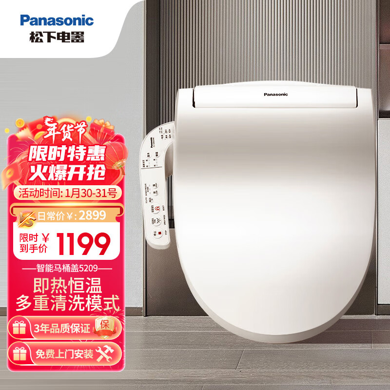 松下(Panasonic)智能马桶盖即热式经典宽幅款马桶盖子洁身器DL-5209CWS价格:1299.00元!