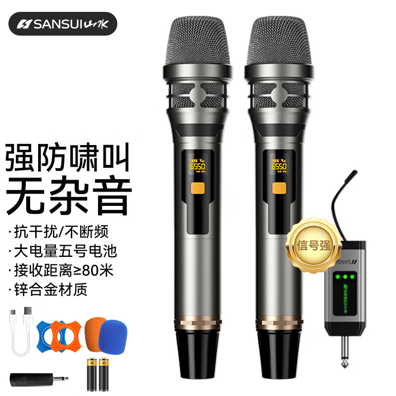 山水(SANSUI)K系列无线话筒家庭KTV唱歌演讲主持会议K歌电视音箱音响户外通用麦克风 K40一拖二价格:399.00元!