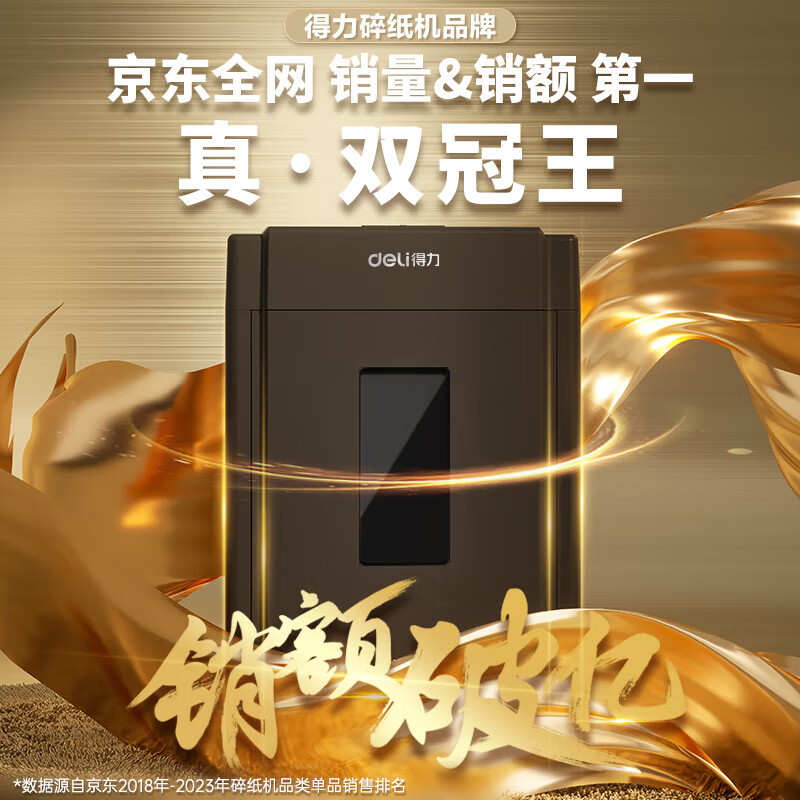 得力5级保密碎纸机33043 双粉碎口 商用办公碎纸大型粉碎机 单次8张 可碎光盘/卡/钉 20L 30分钟价格:489.00元!
