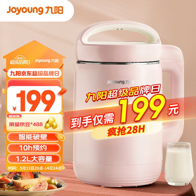 九阳(Joyoung)豆浆机1.2L破壁免滤 预约时间家用多功能2-3人食破壁榨汁机料理机DJ12A-D2190价格:199.00元!