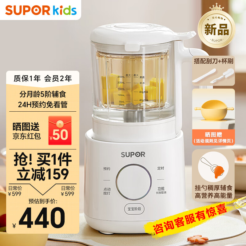 苏泊尔(SUPOR)宝宝辅食机婴儿料理机蒸煮一体多功能米糊打泥研磨辅食工具 FB07价格:599.00元!