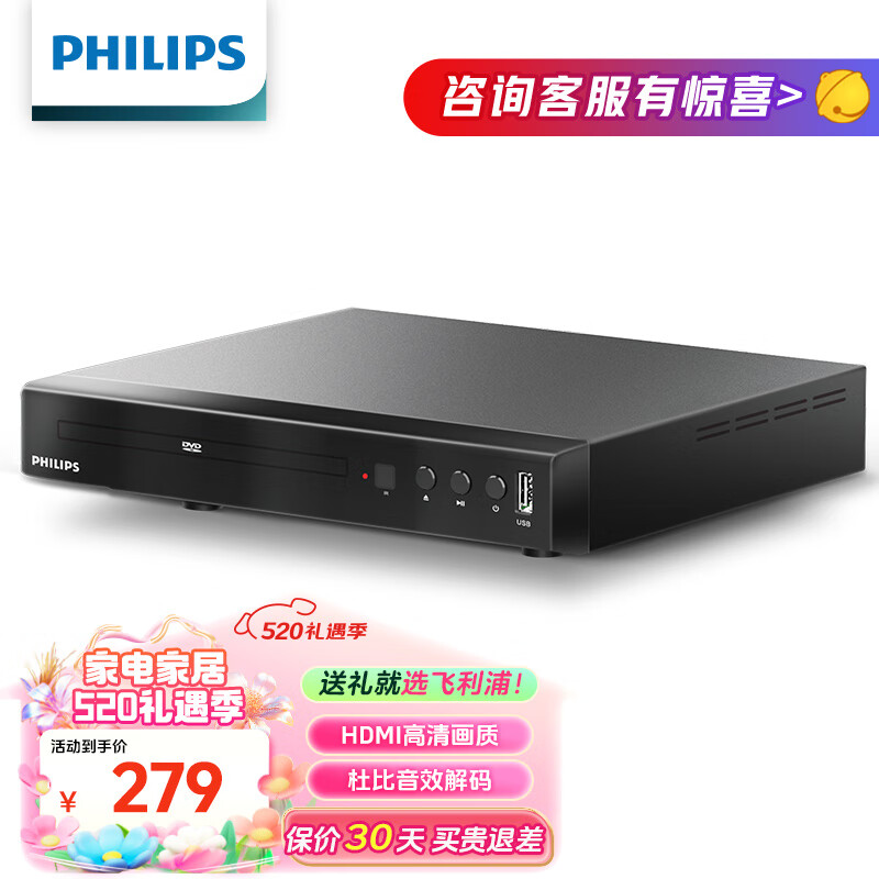 飞利浦 dvd播放机 cd机 dvd 影碟机 dvd影碟机 cd播放器 高清光盘播放机 EP200价格:278.00元!