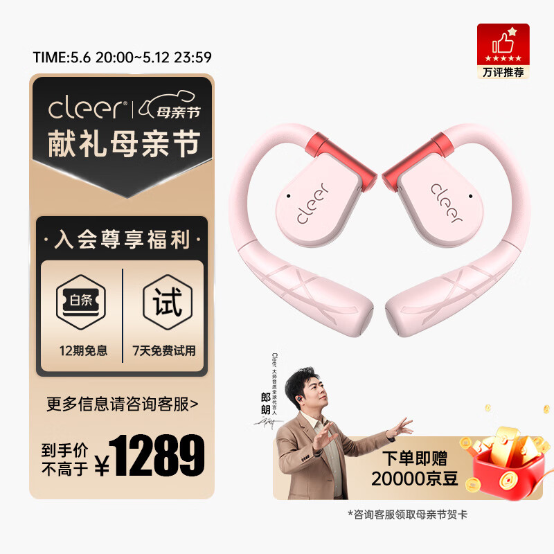 cleer任贤齐代言ARCII不入耳开放式智能运动无线蓝牙挂耳式跑步耳机骨传导升级适用华为苹果节日礼物 粉红色【运动版】价格:1789.00元!