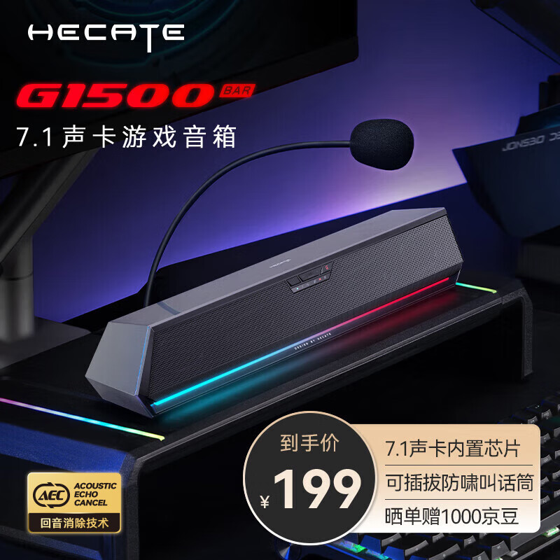 漫步者(EDIFIER)HECATE G1500bar 7.1音效电竞桌面游戏音箱防啸叫话筒蓝牙5.4电脑多媒体家用台式机笔记本音响灰色价格:209.00元!