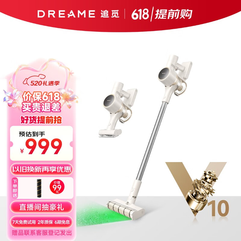 追觅吸尘器V10S 无线手持家用 绿光显尘 贴边软绒滚刷 155AW大吸力长续航 高速马达 家庭宠物适用价格:1099.00元!