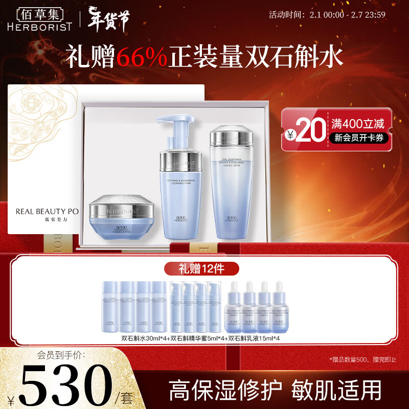 佰草集(HERBORIST)【双石斛】高保湿套装(洁面泡145ml+水180ml+面霜50g)送礼物礼盒价格:557.00元!