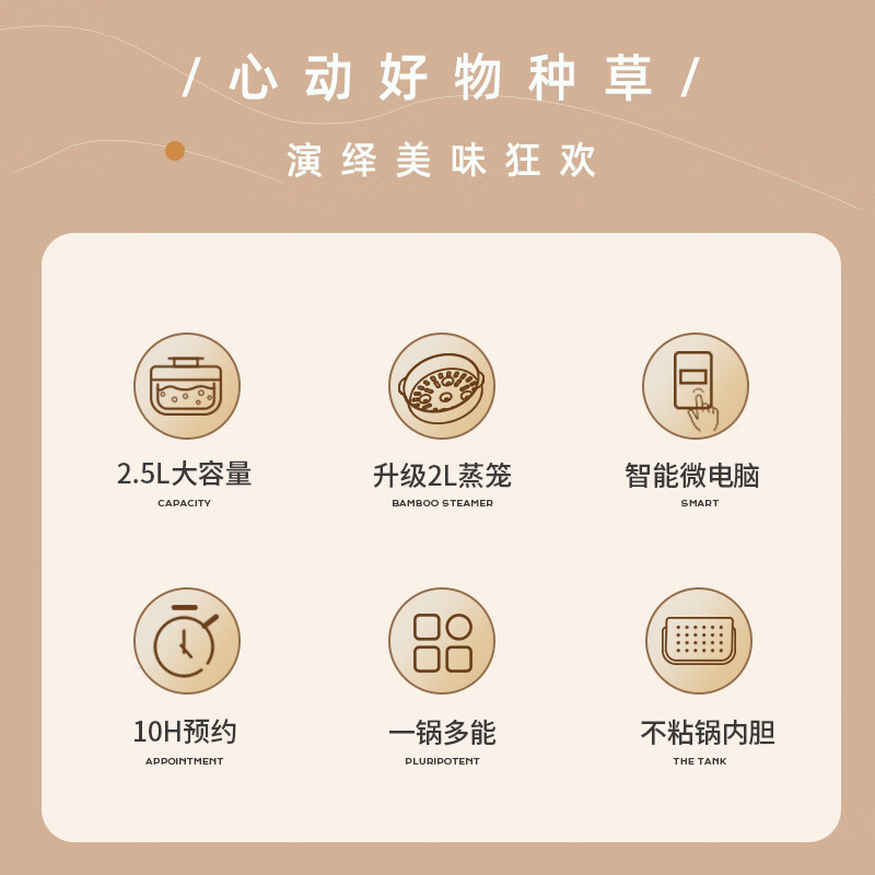 小浣熊电煮锅电炒锅迷你宿舍用煮面泡面电蒸锅电锅一体多功能电热锅电火锅婴儿辅食锅 智能蒸笼款电炒锅 2.5L价格:127.00元!