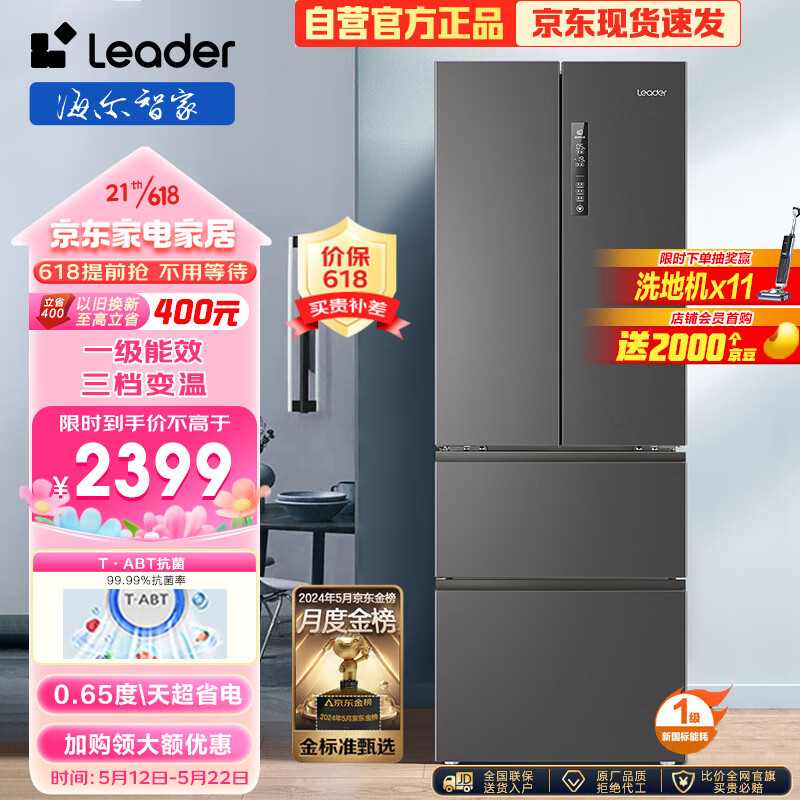 Leader 海尔智家出品342升风冷无霜一级能效双变频变温节能法式四门多门家用电冰箱BCD-342WLLFDD9S9价格:3099.00元!