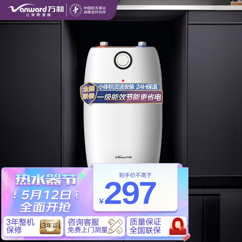 万和(Vanward)家用小厨宝E05-M2WM10-15 储水式 一级能效 4大防护 小体积热水 5L 小厨宝价格:297.00元!
