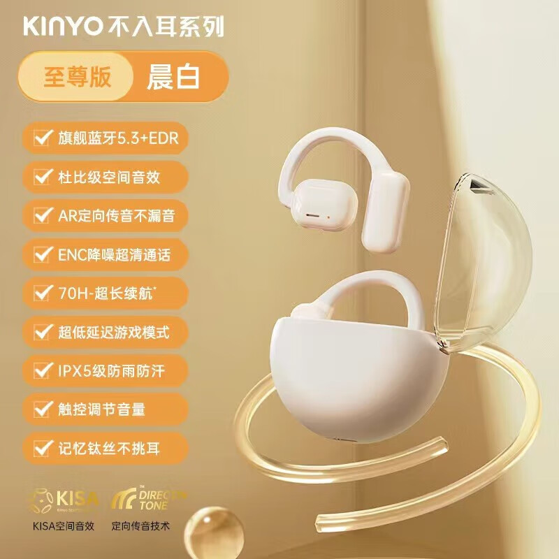 金运【排行前十丨柏林之声】蓝牙耳机骨传导概念长续航大电量音质真无线挂耳式不入耳开放运动价格:108.00元!