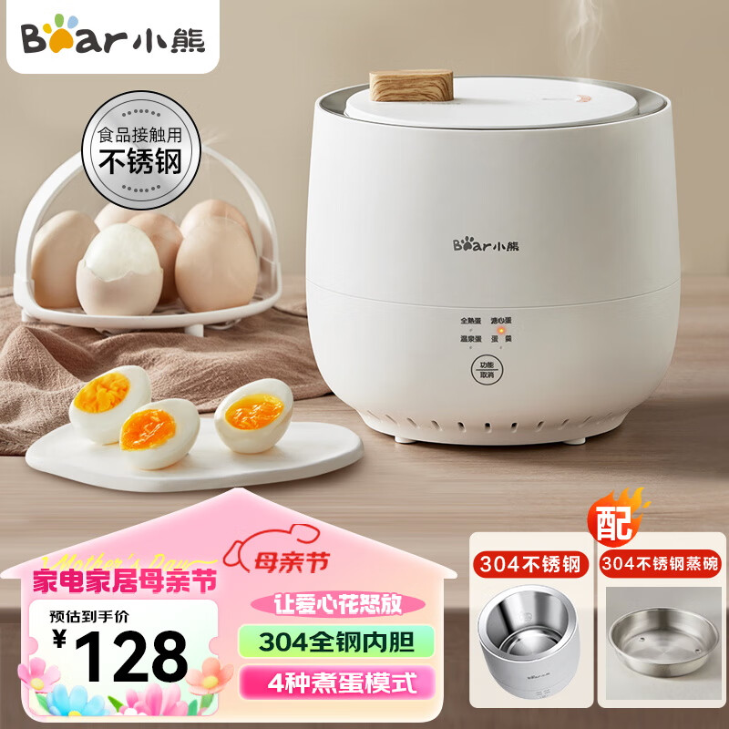 小熊(Bear)煮蛋器 蒸蛋器 智能定时 自动断电 小型不锈钢 防干烧 蒸煮鸡蛋一体机神器ZDQ-B06R2价格:128.00元!