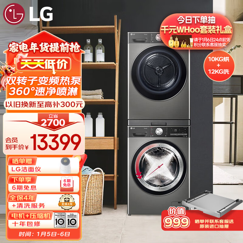 LG小旋风MAX洗烘套装 12kg滚筒洗衣机+10kg双变频热泵烘干机 洗净比1.1 FCW12Y4PA+RH10V9PV2WR 银价格:14999.00元!