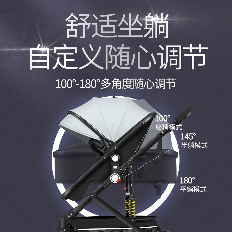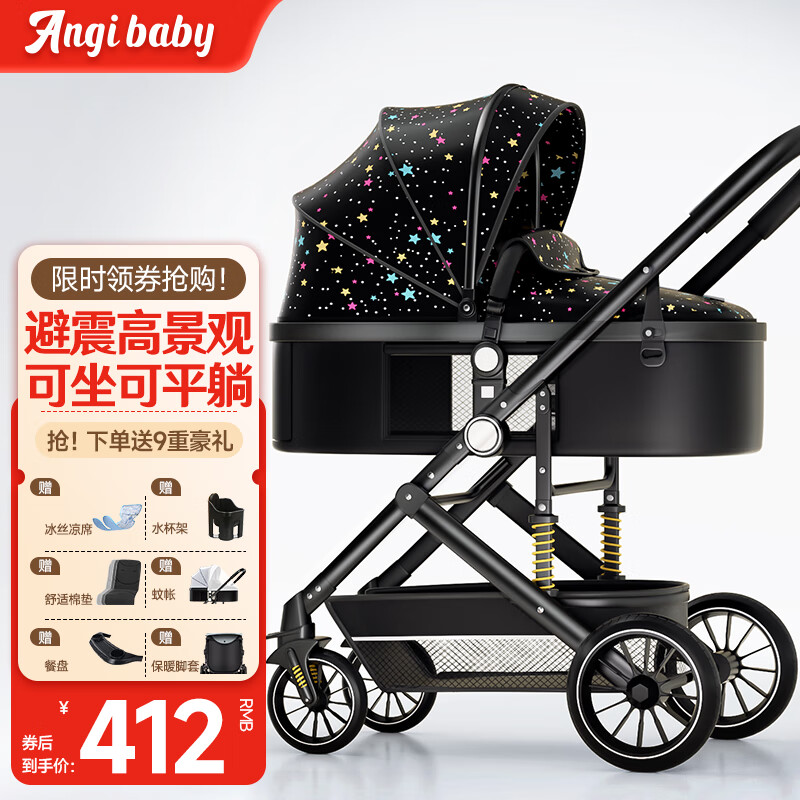 ANGI BABY婴儿推车可坐可躺可折叠新生儿减震婴儿车高景观双向手推车童车价格:469.00元!