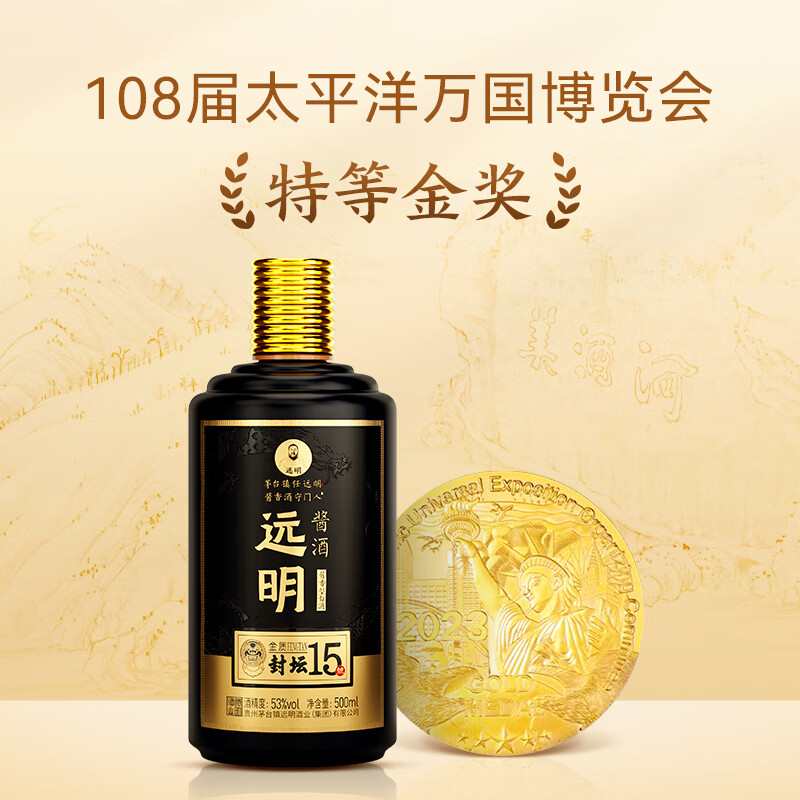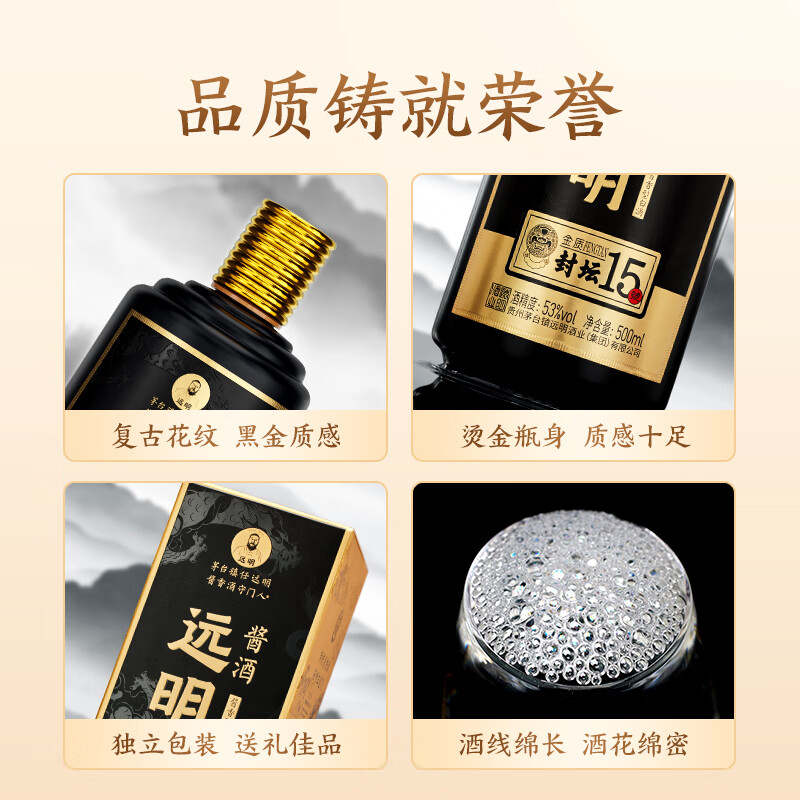 远明酱酒 金质封坛15号 酱香型白酒53度500ml*6瓶整箱装价格:798.00元!