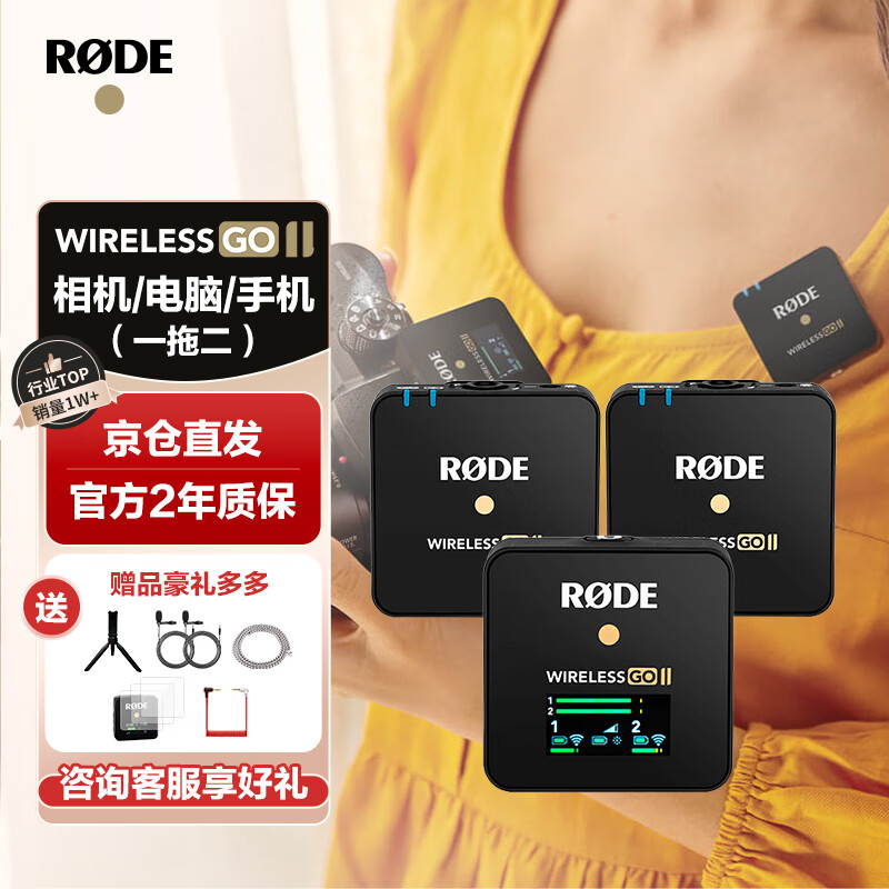 RODE 罗德 Wireless Go II无线领夹麦克风一拖二直播录音采访视频VLOG单反相机手机收音话筒官方标配价格:2595.00元!