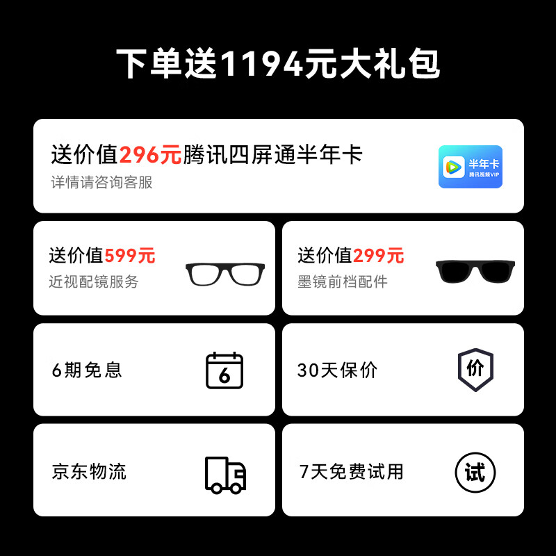 雷鸟X2智能AR眼镜 真无线全彩双目XR眼镜 实时翻译眼镜 导航拍照 便携式交互眼镜 Ring套装价格:4999.00元!