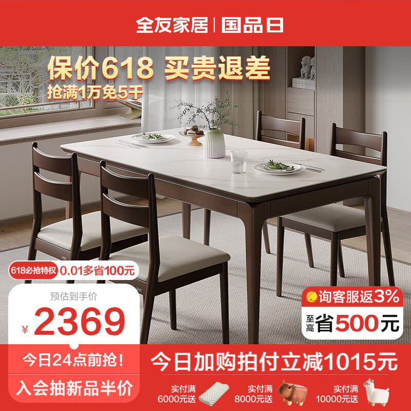 全友家居 餐椅新中式实木框架椅餐厅舒适科技皮软包椅子129706价格:3384.29元!