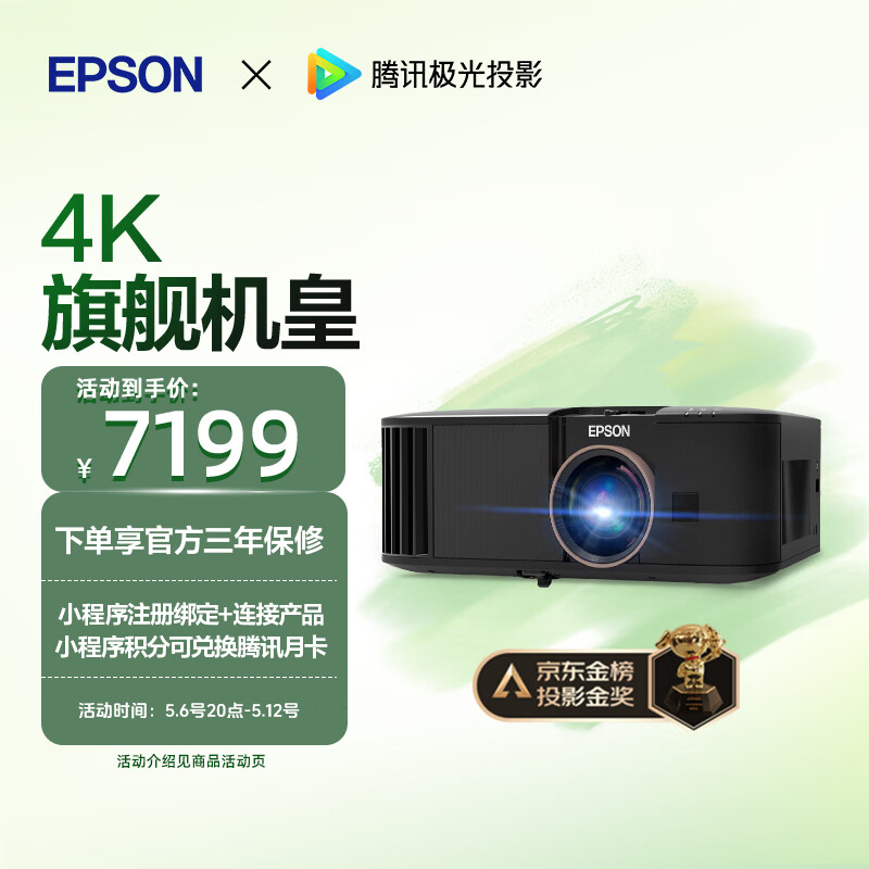 爱普生(EPSON)CH-TW6280T家用投影仪 4K专业家庭影院智能投影仪(±60%镜头位移 1.62倍光学变焦)价格:7199.00元!