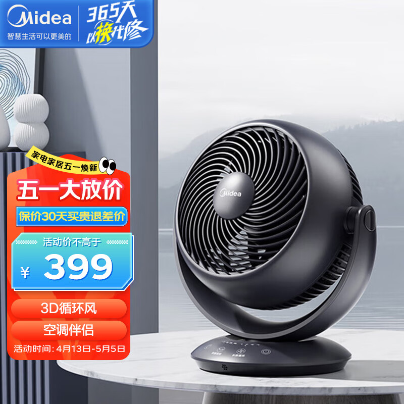美的(Midea)台式循环遥控电风扇节能大风量空调伴侣扇6小时预约定时轻音3D送风FGA18UHR(线下同款)价格:439.00元!