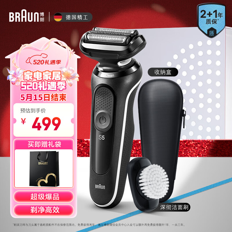 博朗(BRAUN)520礼物送男朋友高效5系电动剃须刀礼盒款往复式刮胡刀礼盒男士男朋友生日礼物送男友送老公送男友价格:499.00元!