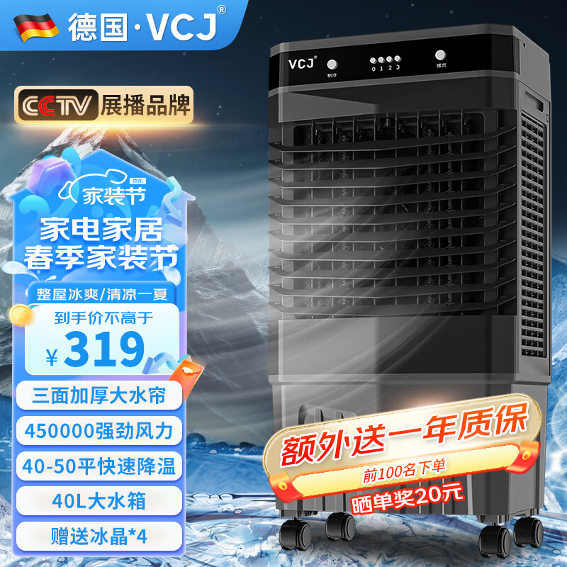 VCJ【德国品牌】 冷风机空调扇制冷水冷电冷风扇加水冷气机家用空调扇商用可移动制冷风扇大风量价格:319.00元!