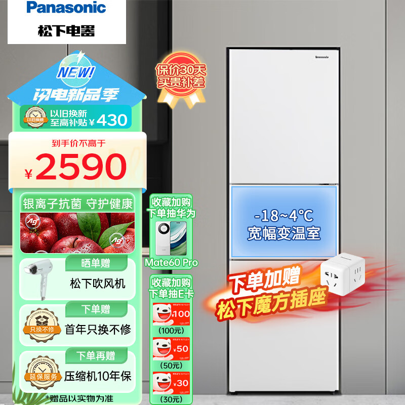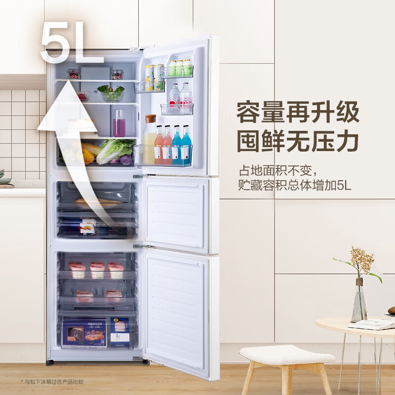 松下(Panasonic)270升家用三门冰箱 60cm超薄小 自由嵌入式 风冷无霜磨砂白色NR-EC27WPB-W价格:2490.00元!