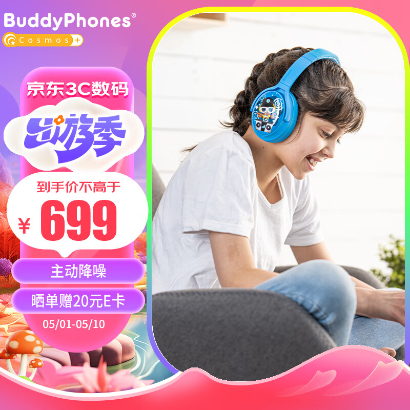 onanoff BuddyPhones儿童耳机头戴式主动降噪 大耳包蓝牙无线网课学习学生耳机 持久续航 Cosmos+天空蓝价格:799.00元!