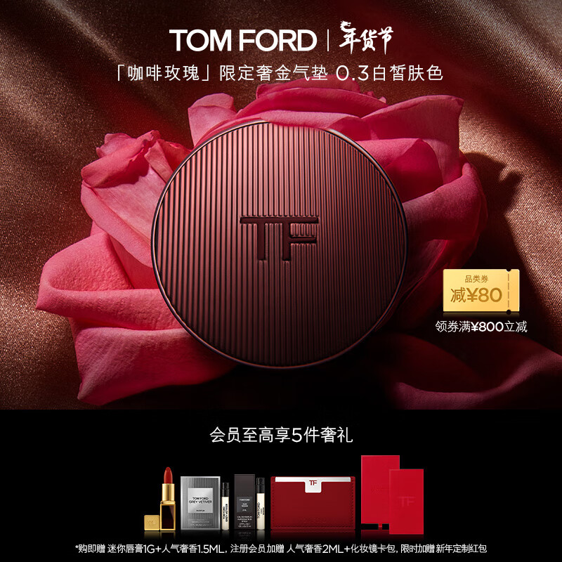 TOM FORD咖啡玫瑰限定 奢金气垫粉底0.3 白皙肤色 生日礼物女 新年送女生价格:890.00元!