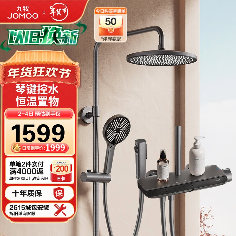 九牧JOMOO枪灰恒温花洒全套琴键置物喷枪双增压顶喷26182-695/HBS-1价格:1999.00元!