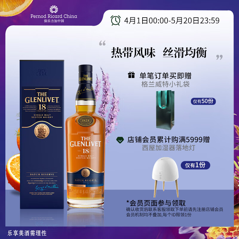 格兰威特(ThE GLENLIVET)18年 陈酿 苏格兰 单一麦芽 威士忌 洋酒 700ml价格:1049.00元!