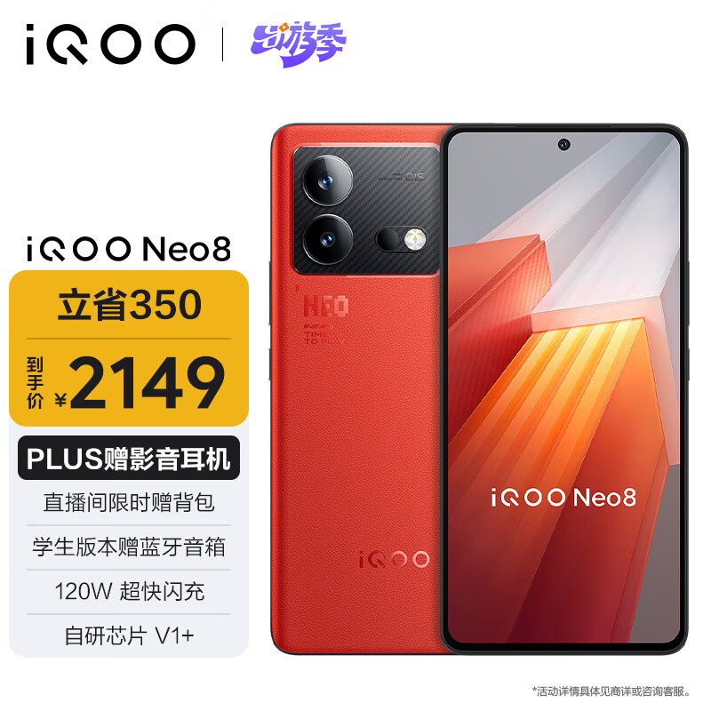 vivo iQOO Neo8 12GB+512GB 赛点 代骁龙8+ 自研芯片V1+ 120W超快闪充 5G游戏电竞性能手机价格:2499.00元!