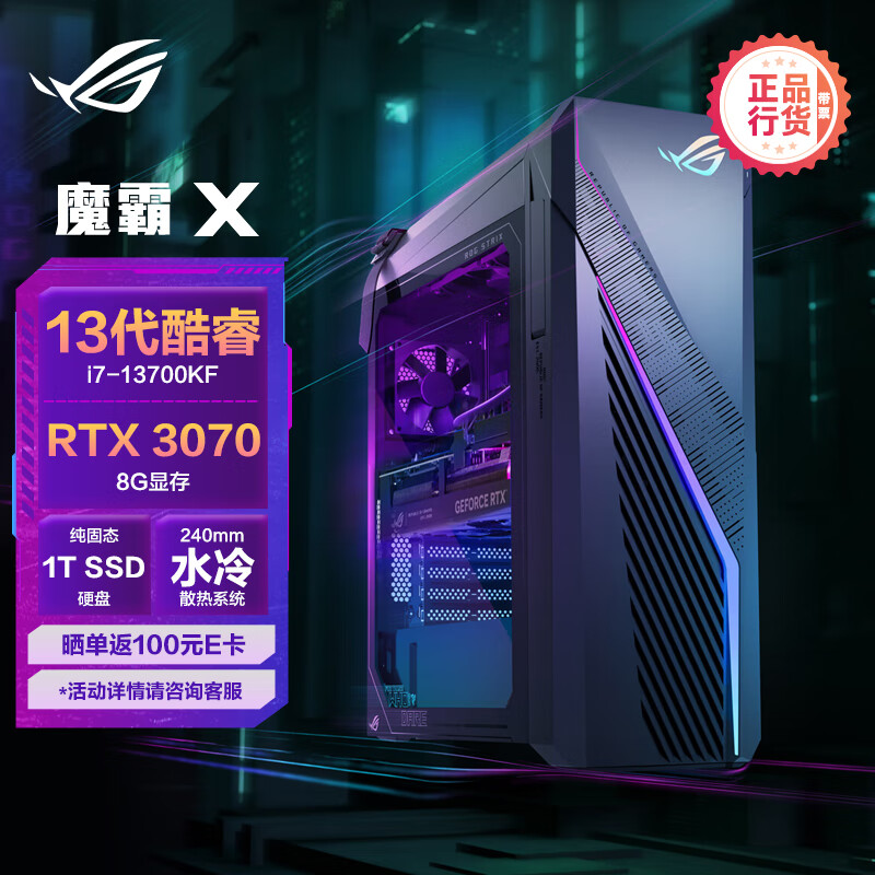 ROG魔霸X 水冷旗舰电竞游戏台式机电脑主机设计师电脑(13代i7-13700KF 16G 1TSSD RTX3070 8G)价格:9499.00元!