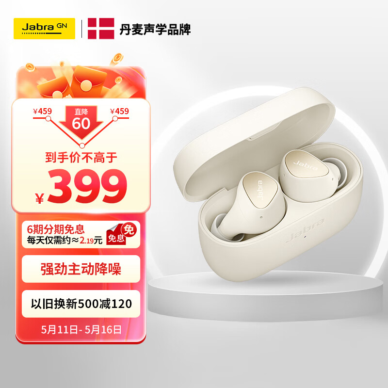 捷波朗(Jabra)Elite4主动降噪耳机 E4真无线蓝牙耳机 小水滴全新上市 音乐运动耳机 月牙白价格:399.00元!