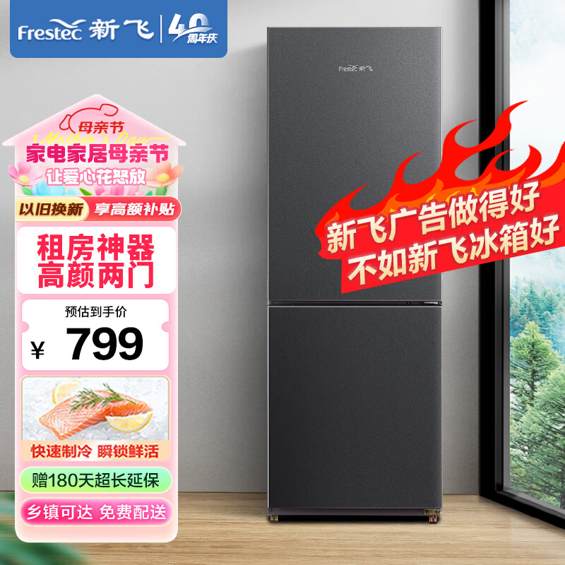 新飞(Frestec)183升双门冷冻速度快小冰箱迷你经济实用节能环保低噪小型两门冰箱 BCD-183KT价格:799.00元!