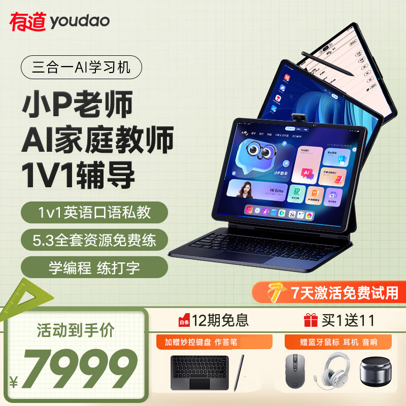 有道有道智能AI学习机x20三合一学习机16+512学习平板电脑小学初中智能学习机学练机早教机平板电脑价格:8199.00元!