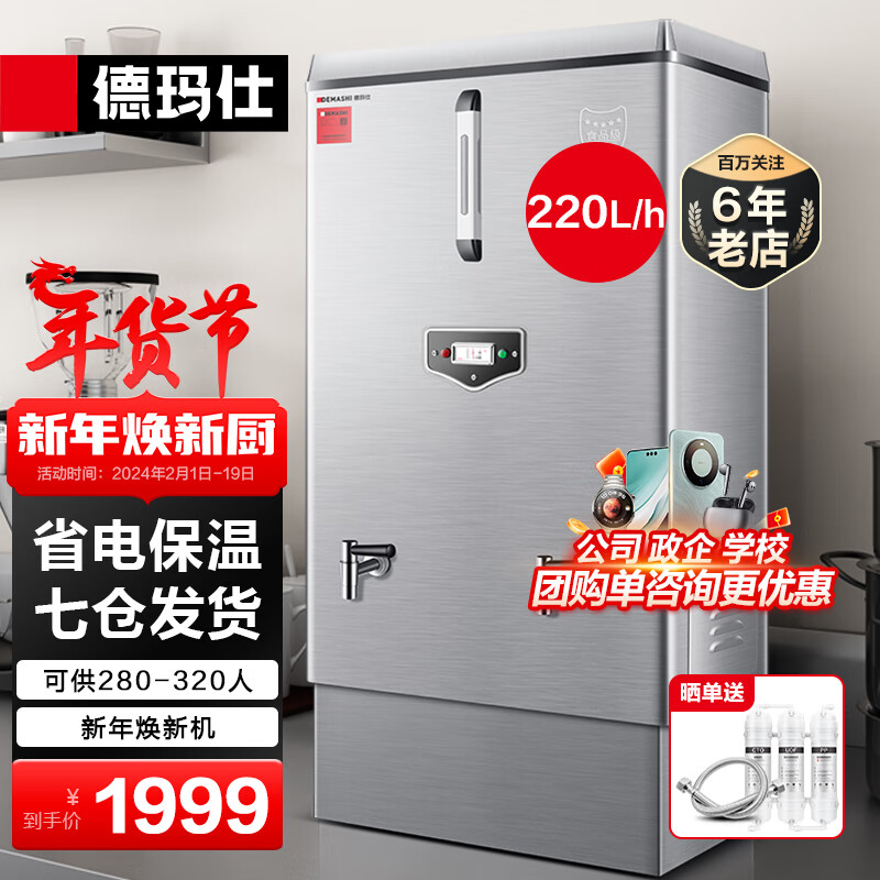 德玛仕(DEMASHI)开水器商用 电热开水机 全自动进水 304不锈钢 烧水器商用 KS-210F(380V)价格:1999.00元!