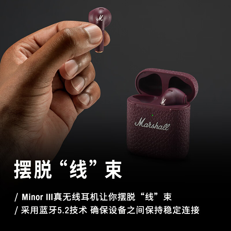 MARSHALL(马歇尔)MINOR III耳机真无线重低音防水3代无线蓝牙TWS耳麦 勃艮第红价格:999.00元!