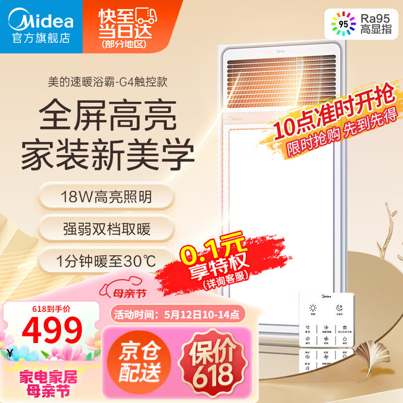 美的(Midea)浴霸风暖照明排气一体强暖大功率智能超薄暖风机卫生间浴室触摸价格:519.00元!
