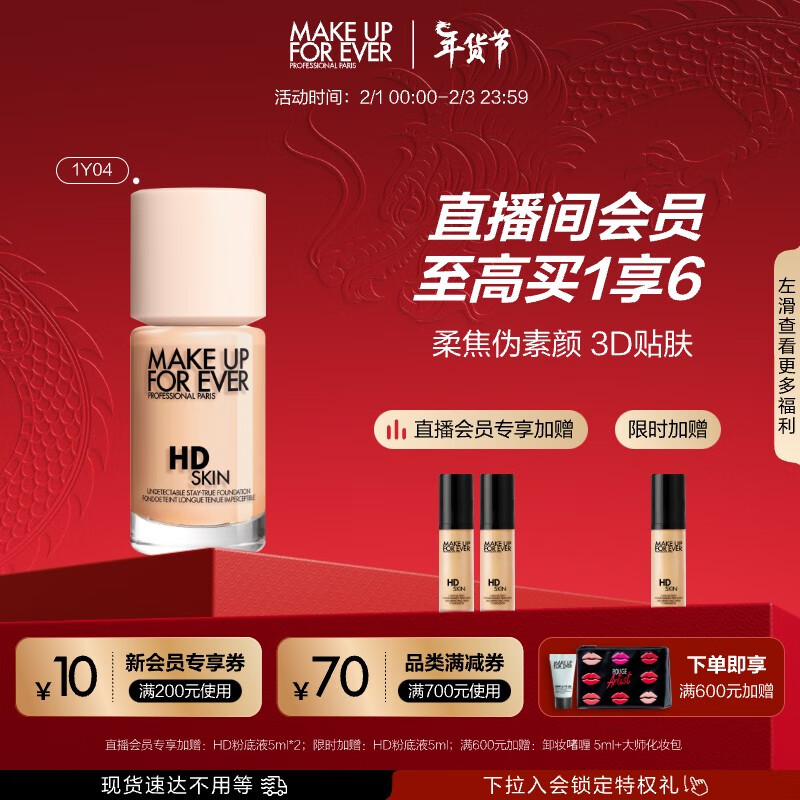 玫珂菲(MAKE UP FOR EVER)清晰无痕亲肌遮瑕粉底液1Y04仿真肌控油持妆不脱妆情人节送女友价格:450.00元!