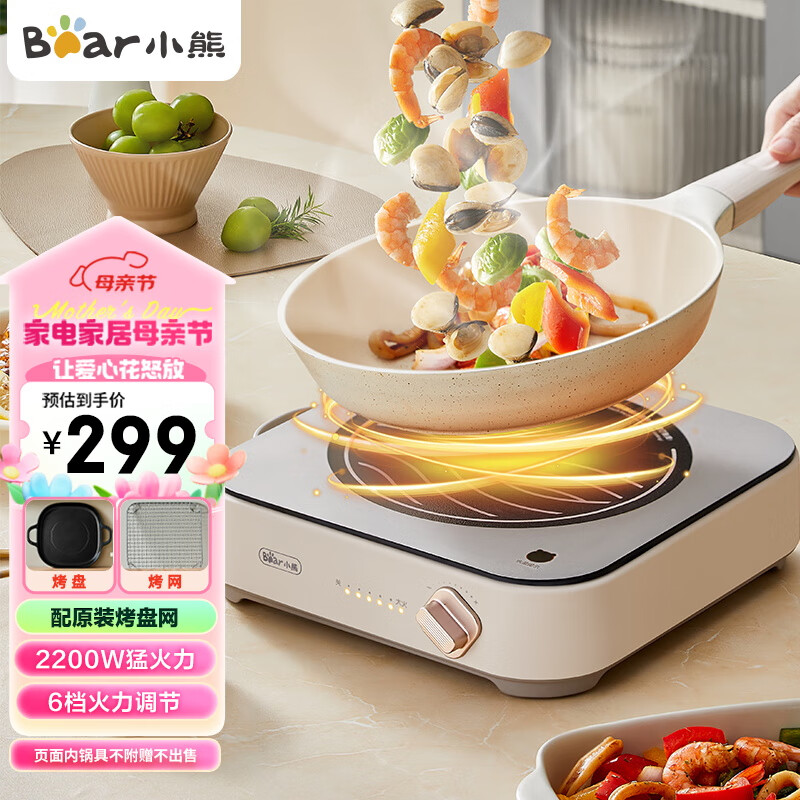 小熊(Bear)电磁炉 大功率电陶炉 小型电磁灶 家用不挑锅具6档火力爆炒 围炉煮茶电池炉2200W DTL-D22R1价格:299.00元!
